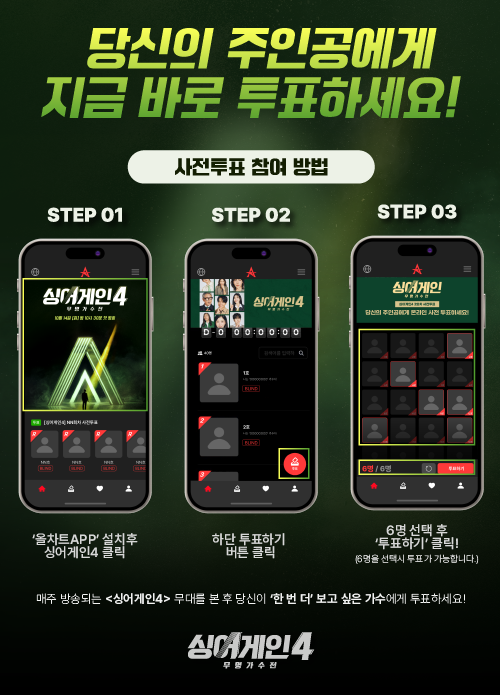 - JTBC NOW 앱: 앱 내 ‘싱어게인4’ 프로그램 페이지를 통해 로그인 후 투표.